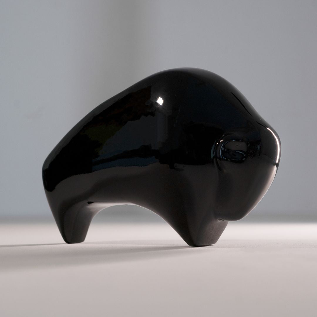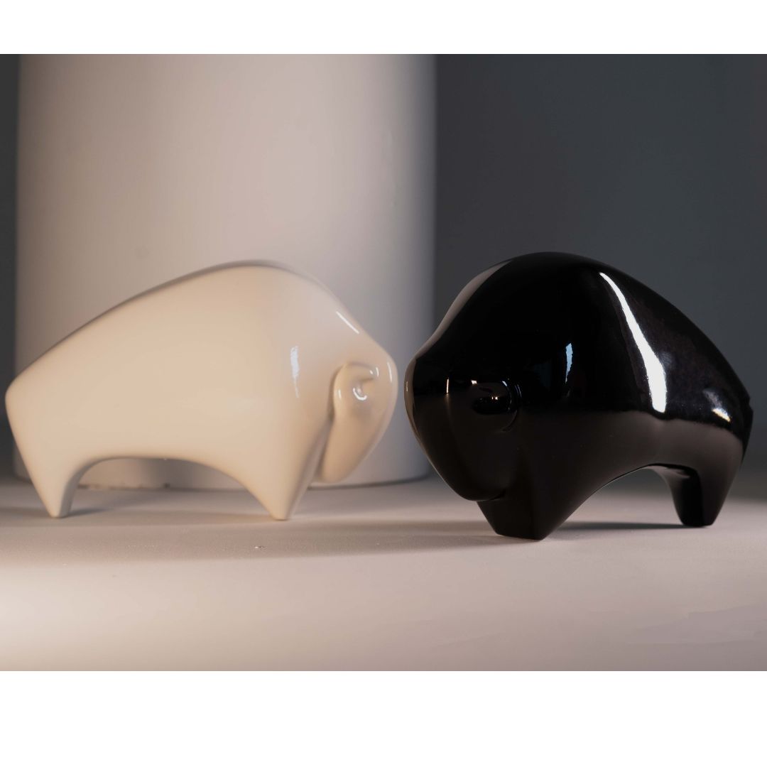 Breathe a touch of the wild into your living room or bedroom with these charming Abstract Bison Figurines. The modern design of this tabletop decorative captures the essence of the bison in a captivating dance of geometric shapes. This delightful duo, perfectly sized for a shelf or nightstand, adds a touch of rustic elegance and is a conversation starter wherever they are placed. These Abstract Bison symbolize Strength, Abundance, Resilience & Prosperity.