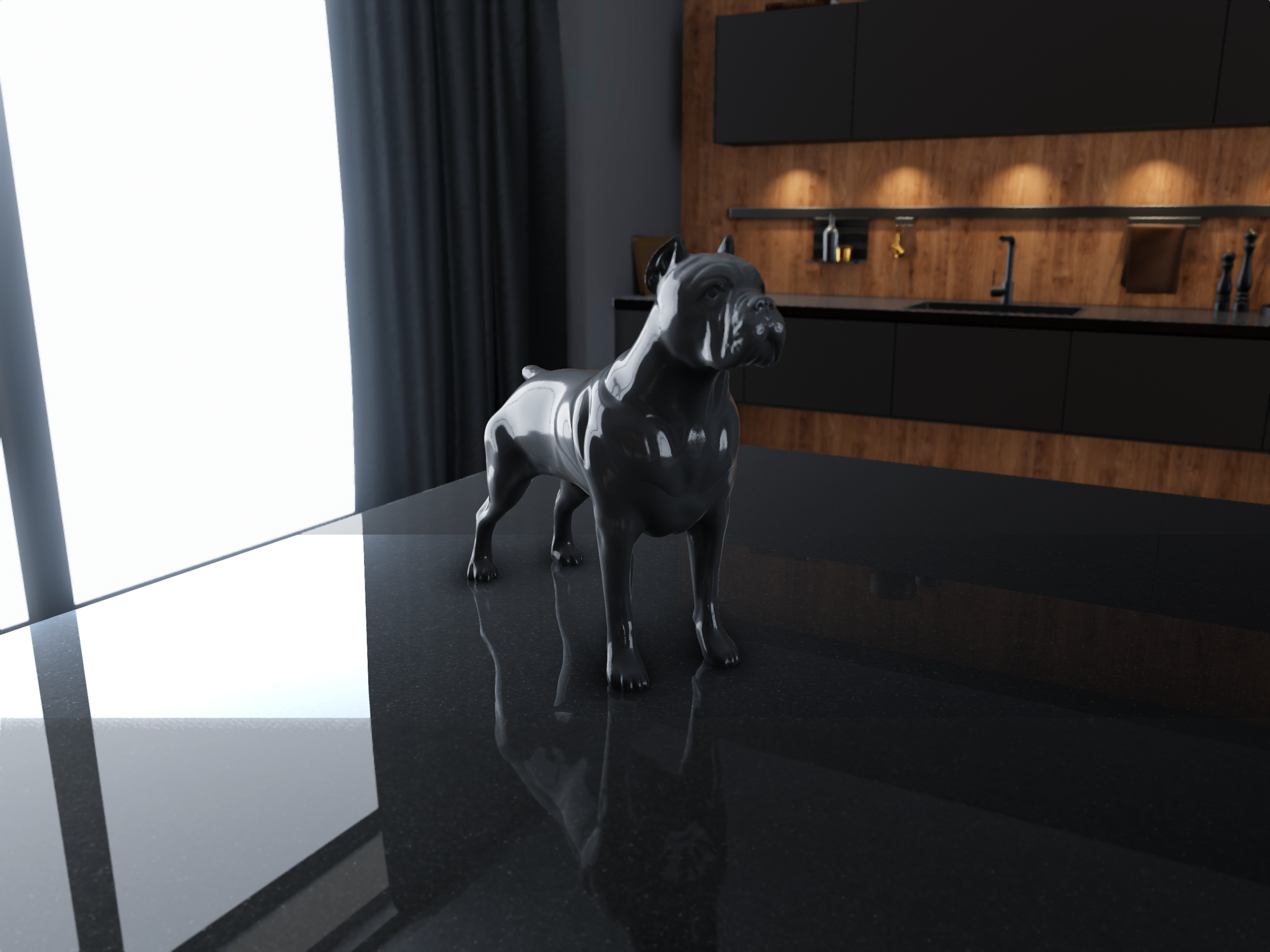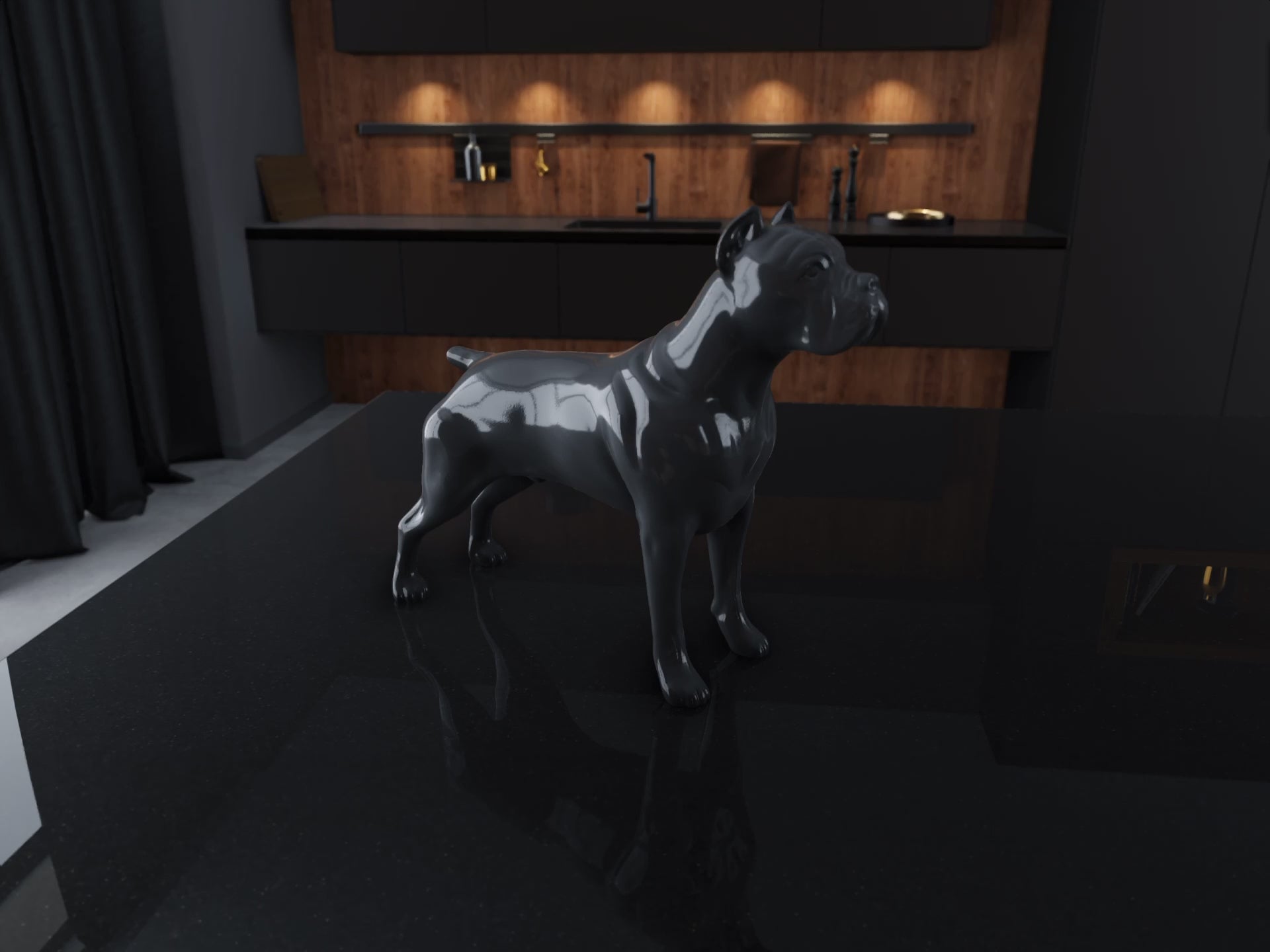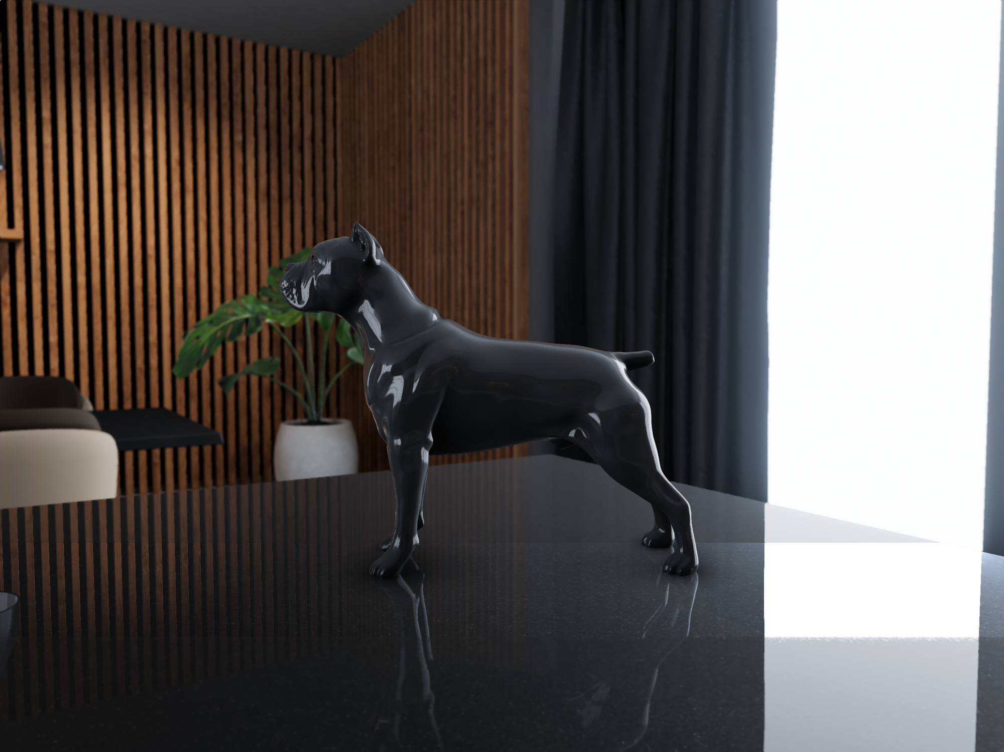 A Cane Corso dog showpiece made of FRP (Fiber-reinforced Plastic) for a tabletop, is a stunning decorative piece. FRP offers durability and lightweight properties, making it ideal for showcasing intricate details of the Cane Corso breed. This showpiece captures the majestic stance and features of the Cane Corso, perfect for dog enthusiasts or as an elegant addition to any tabletop display.
