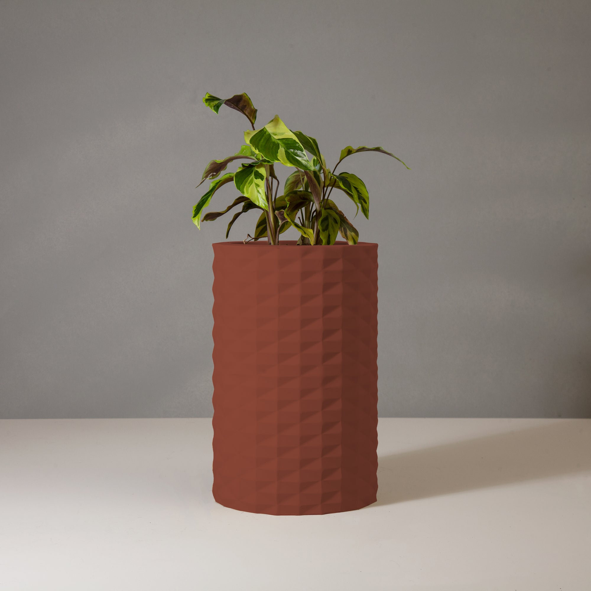 This geometrical-shaped FRP planter is an excellent way to style your entrance or any corner inside your home. Its spacious design allows you to place a large plant inside, making it a striking focal point in any room. Crafted from durable fiber-reinforced polymer (FRP), it offers both elegance and strength.